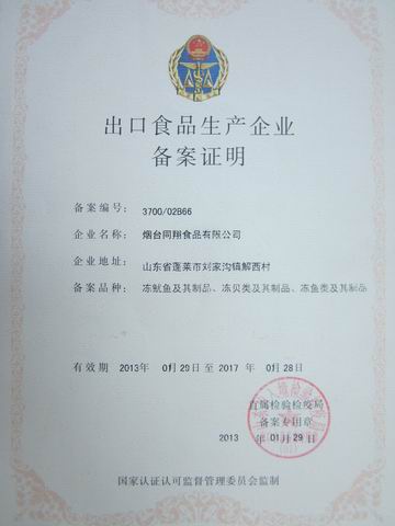2012年3月、蓬萊市海洋と漁業局張洪波局長がリーダーとして,各主要リーダーイニングを連れて、弊社へ見學指導の仕事で、弊社張義強社長を接見した報告を與え、席上張局長が同翔食品の肯定致しました、同翔食品がもっと強く、大きくで、勵まして、これとともに「蓬萊市漁業協會副會長業者」を授與しました